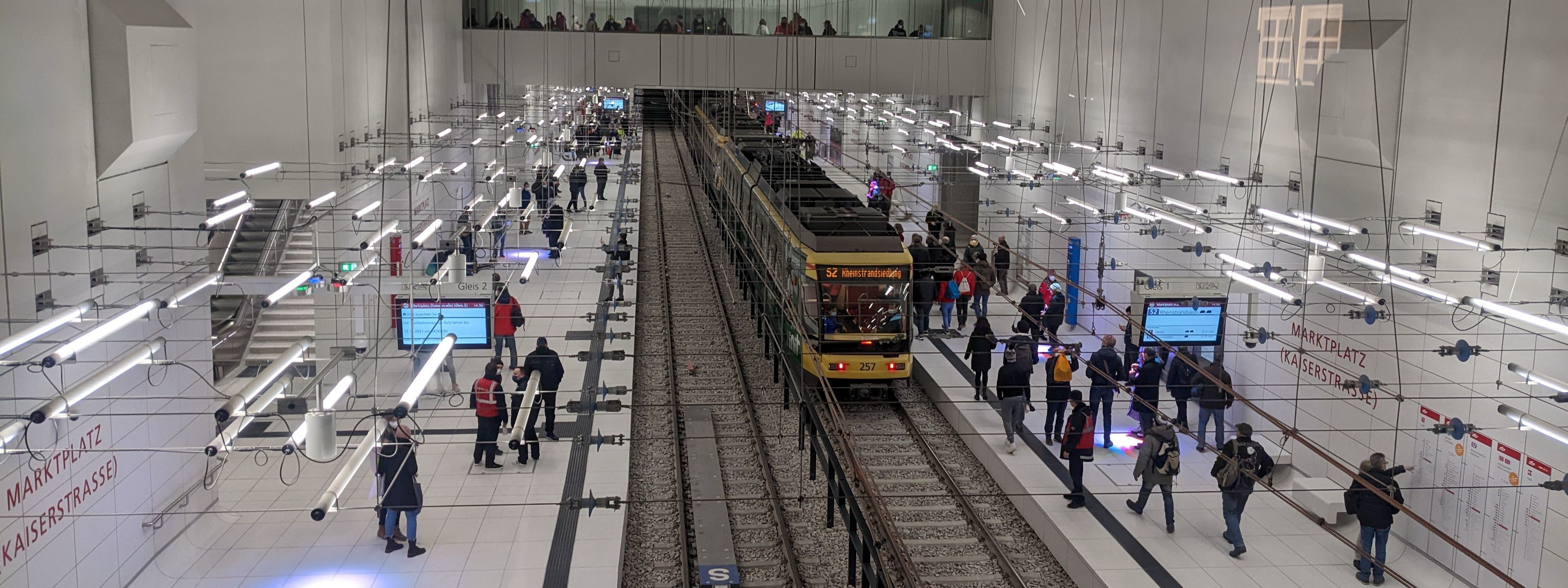 Oben wurden die Baugrubenumschließungen anschließend mit Stahlbetondeckeln geschlossen. Der anstehende Boden verblieb in der Umschließung und die Geländeroberfläche wurde wieder hergestellt. In der 2. Bauphase erfolgten die Tunnelvortriebe in quartären Kies-Sand-Böden unter Grundwasser. Der Tunnel Kaiserstraße wurde mit einer Vortriebsmaschine mit flüssigkeitsgestützter Ortsbrust aufgefahren, der lichte Innendurchmesser betrug 8,20 m. Erst nach Abschluss des Tunnelvortriebs erfolgt der Aushub unter den Deckeln und der endgültige Ausbau der Haltestellen mit Verteilergeschossen oberhalb der Fahrebene sowie Treppen und Aufzugsanlagen zur Oberfläche und zu den Bahnsteigebenen. Die Überdeckung war lediglich 4 bis 8 m mächtig.